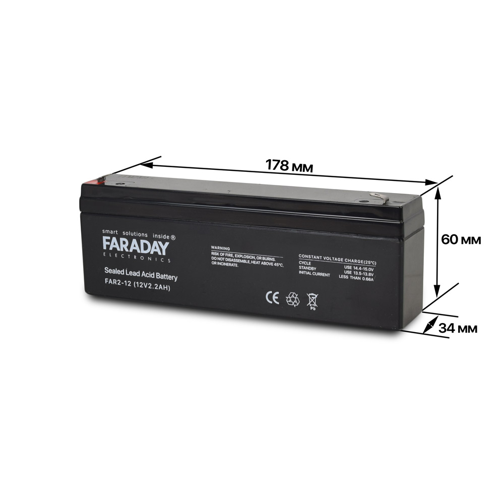 Опис товару Акумулятор 12В 2 Аг для ДБЖ Faraday Electronics FAR2-12