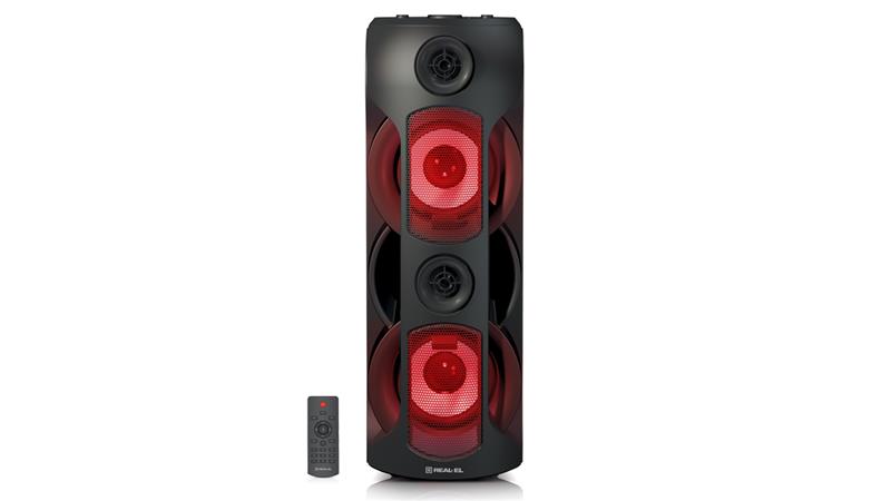 Функція TWS подвоїть потужність - одночасне підключення двох систем до одного джерела сигналу по Bluetooth. Ну і нарешті, для зручності передбачений пульт дистанційного керування. Мультимедійна портативна акустична система REAL-EL X-787 має сучасний дизайн з RGB підсвічуванням і якісним потужним 80-ти Ватт-ним звучанням. Широкий функціонал "бумбокса" дозволяє прослуховувати музику підключаючи мобільні пристрої, ПК, TV, ноутбуки і т. д., як через вивід AUX, так і по Bluetooth. USB і Micro SD card роз’єми дають можливість прослуховувати аудіо-файли з flash носіїв.