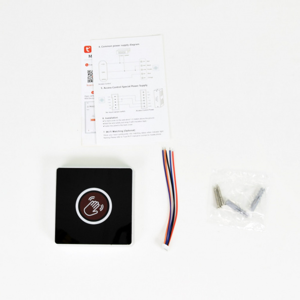 Кнопка виходу ATIS Exit-KT з підтримкою Tuya Smart для контролю доступу. Безконтактний спосіб використання. Інтегрується з екосистемою Tuya Smart. Тип встановлення: накладний. Лінійні виходи: NO/NC/COM. Відстань детекції: 5-15 см (регулюється). Живлення: DC 12 В. Функціональні особливості: підсвічування кнопок. Матеріал корпусу: ABS + Acrylic. Розміри: 86 x 86 x 20 мм