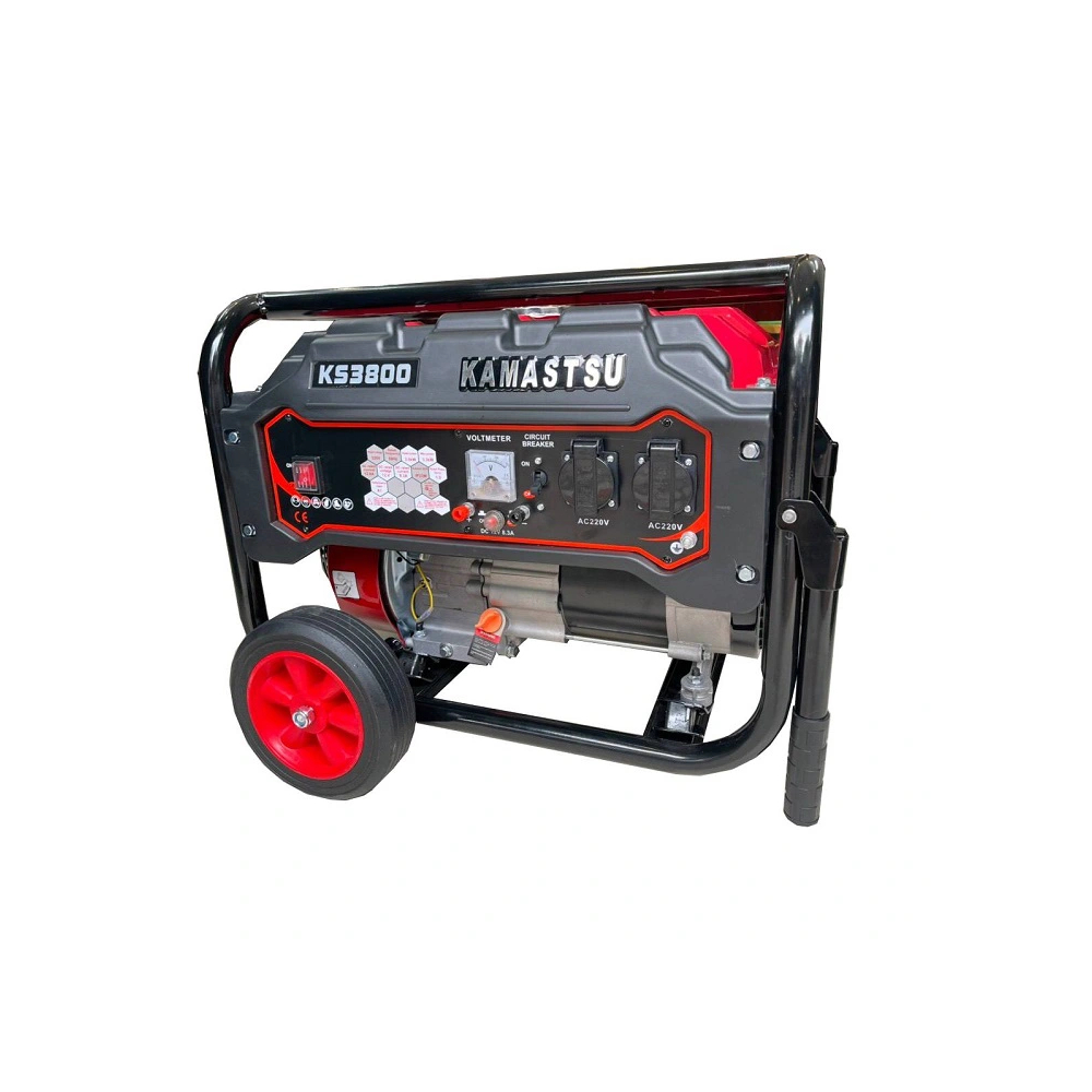Бензиновий однофазний генератор Kamastsu KS3800 — призначений для забезпечення постійного електропостачання в умовах відсутності централізованої електроенергії. Максимальна потужність 3.3 кВт, що дає змогу живити різні побутові та виробничі пристрої, включно зі світильниками, холодильниками, кондиціонерами, комп'ютерами та багато іншого.