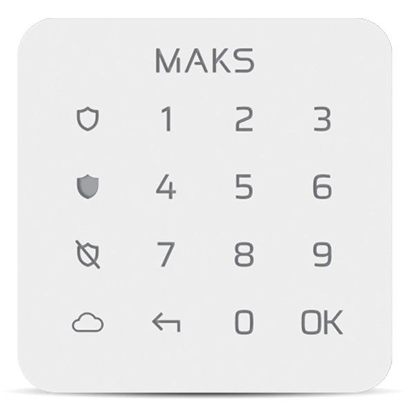 Бездротова міні-клавіатура для постановки і зняття з охорони, індикації тривог і стану пристрою і взаємодії з користувачем тривожної сигналізації. Колір: білий, чорний. Розмір: 84.5 х 84.5 х 14.6 мм