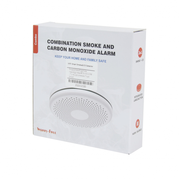 Бездротовий автономний датчик диму та чадного газу ATIS-801DW-T з підтримкою Tuya Smart