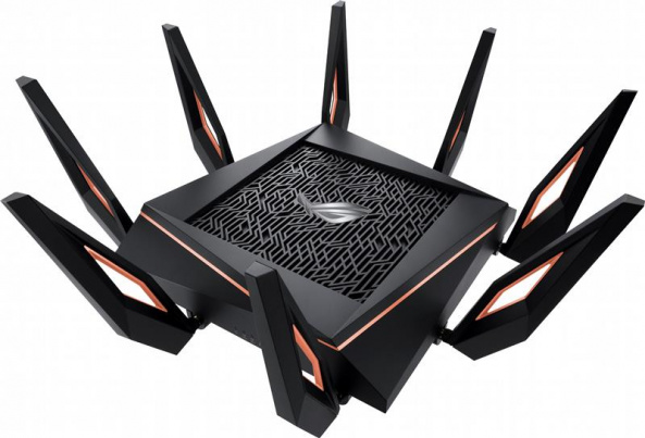 Тридіапазонний ігровий маршрутизатор стандарту WiFi 6 (802.11ax): 4-ядерний процесор, порт стандарту 2.5G Ethernet, підтримка динамічного вибору частот DFS, геймерська платформа wtfast, адаптивна система QoS, підтримка mesh-технології AiMesh, інформаційна безпека AiProtection Pro.