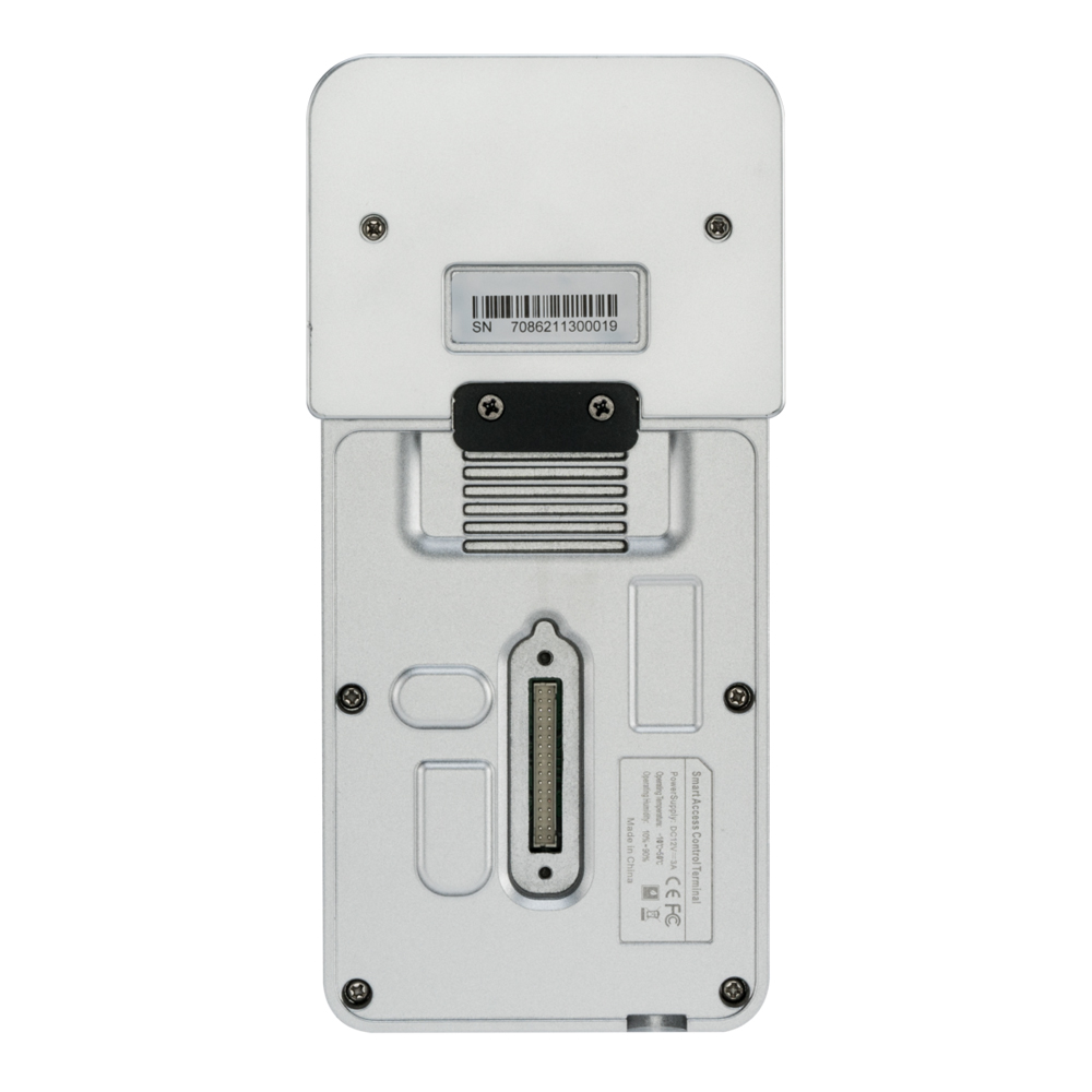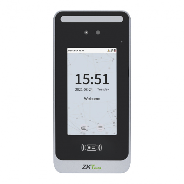 Біометричний термінал SpeedFace M4 вологозахищений обліку робочого часу і контролю доступу з функцією розпізнавання обличчя і долоні з пам'яттю на 6000 шаблонів облич, 3000 долоней, 10000 карт доступу, 200000 подій. Інтерфейси зв'язку – TCP/IP, Wiegand вхід і вихід, RS485, RS232. Дальність розпізнавання обличчя до 2 м під кутом до 30 градусів.