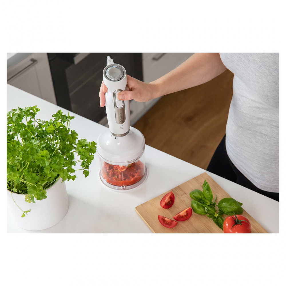 Насолоджуйтесь максимальною потужністю двигуна блендера Sencor SHB4461GR-EUE3, який при цьому працює тихо. Тримайте приготування страв під контролем і прискорюйте загальний процес приготування. Блендер можна використовувати трьома різними способами - змішувати, збивати і подрібнювати.