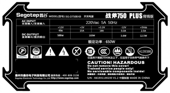 У виробництві даних блоків живлення використовуються якісні і надійні конденсатори, трансформатор, проводи збільшеного перетину, якісні конектори. Segotep - OEM виробник, на потужностях їх заводів, виробляють блоки живлення відомі Європейські бренди.