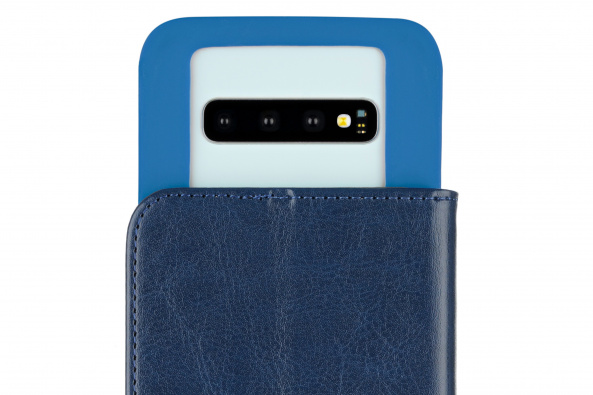 Зовні чохол виконаний із якісної гладкої PU шкіри, внутрішній шар з мікрофібри. Щільний силіконовий тримач для смартфона товщиною 2 мм стійкий до розтягування і щоденного зносу. Для зручного користування камерою є вбудований слайдер. Закритий чохол надійно фіксується магнітної застібкою. Чохол може бути використаний в режимі стенду для читання і перегляду відео. Усередині чохла зручне відділення для готівки і три слота для кредитних карт.