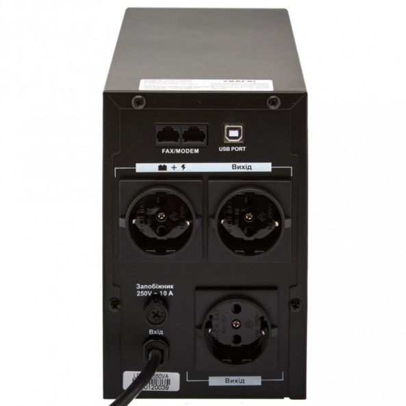 Джерело безперебійного живлення лінійно-интерактивне, з можливістю підключення 3 електроприладів, номінальна потужність 770Вт, діапазон напруги 145-290VAC, апроксимирована синусоїда, 2 вбудованих акумулятори 12В 7.5А*г, розміри 340х121х188 мм