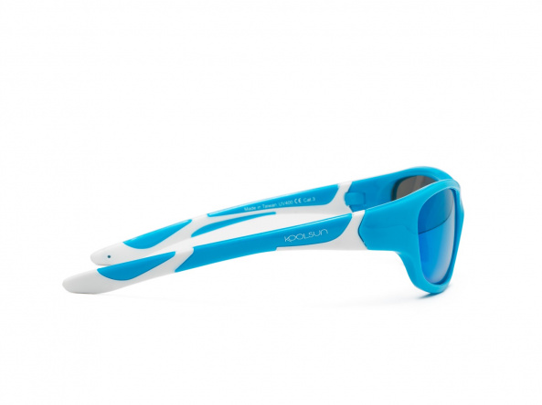Сонцезахисні окуляри KOOLSUN AQUA WHITE SPORT відмінно підходять для дітей 6-12 років. Завдяки продуманій формі дужок окуляри відмінно тримаються і не заподіюють дискомфорт вушкам дитини. Блакитні лінзи зроблені з ударостійкого полікарбонату, який не ламається, і мають сертифікацію 1 оптичного класу і 3 категорію фільтрації (затемнення/прозорості лінз згідно з європейськими (EN 1836-1997), американським (ANSI Z80.3-1996) і австралійським (AS 1067.1- 1990) стандартами) - інтенсивний захист від сонця з 100% UV-A і UV-B захистом від шкідливого впливу сонячних променів.