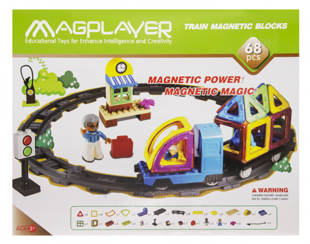 Дуже цікавий набір магнітного конструктора MagPlayer, який дозволить побудувати справжню залізну дорогу, разом з поїздом і невеликим вагоном. Для цього передбачено 68 різних деталей - як геометричних фігур, так і рухомих і декоративних елементів. У кожного функціонального елемента є магнітні кріплення, які забезпечують надійну і міцну фіксацію.