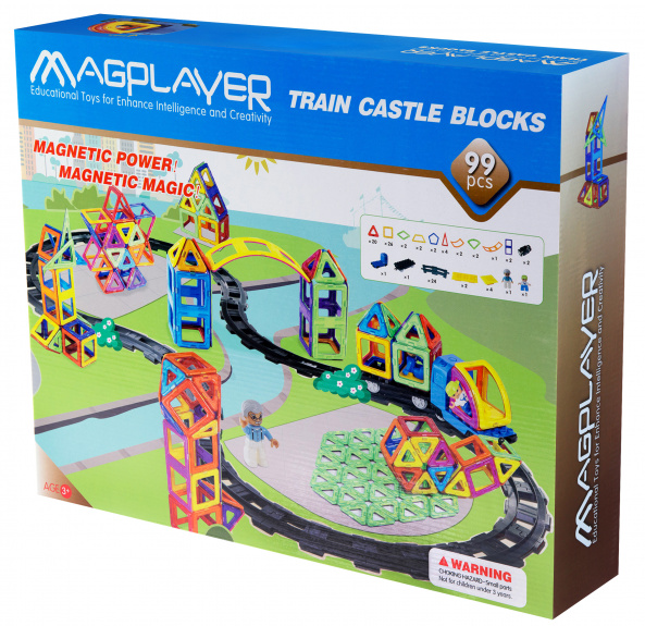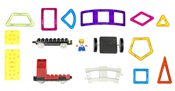 Магнітний конструктор MagPlayer на 99 деталей дозволить вашій дитині розвити творчість та моторику рук. До складу набору входять різноманітні геометричні фігури, серед яких: прямокутники, трикутники, квадрати та фантазійні форми. Також до конструктора входять деталі, завдяки яким дитина зможе збудувати автомобіль, міст і навіть потяг на колії. Такий розвиваючий магнітний конструктор створений для маленьких мандрівників, що допоможе розвивати мислення, моторику і уяву.