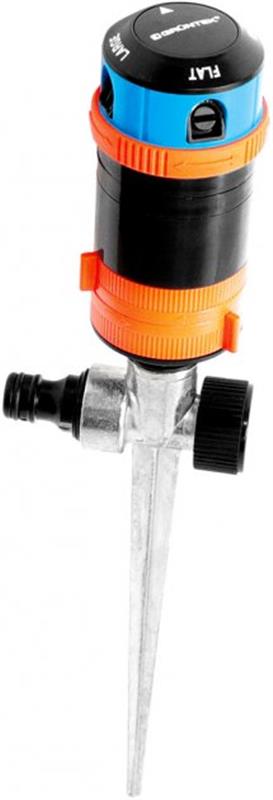 Металевий кілочок Круговий дощівник Gruntek 4-позиційний забезпечує полив у радіусі до 360° і площею до 452 м2. Надійний, приєднується до автоматичної системи поливу для поливання газонів на території приватних будинків, дачних ділянок і ін. Компактний дощівник виготовлений із міцного пластику на металевому кілочку, який тримає дощівник у газоні попри тиск води. Дощівник забезпечує полив не тільки по колу на 360°, дасть змогу автоматично поливати газони та інші різновиди рослинності з потрібною частотою й напором.