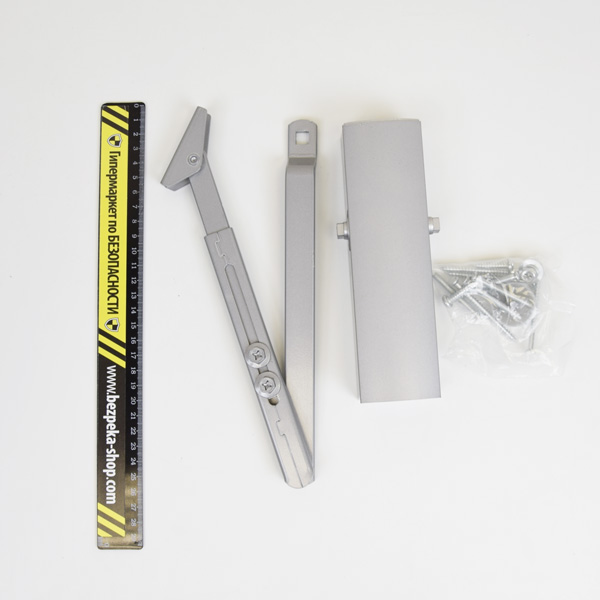 ATIS DC-1500 Silver дотягувач верхнього монтажу з важільною передачею. Комерційне використання, напрацювання на відмову 500000 циклів. Зусилля зачинення від DIN 3 (вага дверей від 60 до 80 кг, ширина від 500 до 1200 мм). Функція Back-check. Колір срібний.