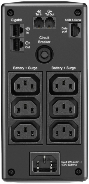 автоматичний тест батареї; запуск під час відсутності напруги в мережі; звуковий сигнал; інтелектуальне керування акумуляторами; сповіщення про відмову акумулятора; з автоматичним регулюванням напруги (AVR)