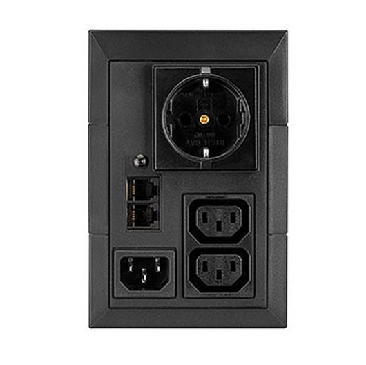 ДБЖ лінійно-інтерактивне. Потужність: 650 ВА / 360 Вт. Вхідна напруга: 170-280В. Вихідна напруга: 230В. Форма вихідної напруги: апроксимована синусоїда. АКБ 12В ємністю 7Агод. Вихідні роз'єми: 1 Schuko (DIN) + 2 IEC C13 (10 A). Розміри 288 x 148 x 100 мм