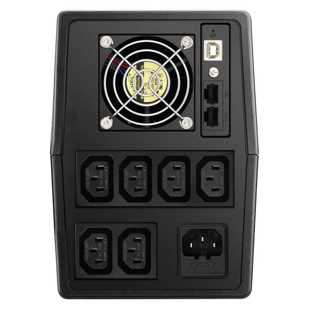 ДБЖ лінійно-інтерактивне. Потужність: 2000 ВА / 1200 Вт. Вхідна напруга: 162-290В. Стабілізація вихідної напруги ±10%. Форма вихідної напруги: апроксимована синусоїда. 2 АКБ 12В ємністю 9Агод. Вихідні роз'єми: 6 IEC. Розміри 320 x 130 x 182 мм