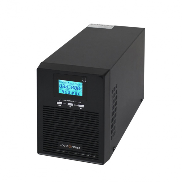 ДБЖ Smart-UPS LogicPower-1000 PRO 36V для забезпечення резервного живлення в разі раптового або аварійного вимкнення електроенергії. Забезпечує безперебійним живленням: персональні комп'ютери, дрібне мережеве обладнання, офісну техніку, аудіо- та відеообладнання, мережеві сховища. Тип: smart online. Кількість фаз: 1. Потужність: 1000 VA / 900 W. Форма вихідної напруги: правильна синусоїда. Функції стабілізації напруги (AVR). Діапазон вхідної напруги: 110-300 В. Вихідна напруга: 208/220/230/240±1% В. Номінальна напруга АКБ: 36 В. Час перемикання: 0 мс. Холодний старт (можливість запуску обладнання без підключення до електромережі). Захист від: короткого замикання, перевантаження, перенапруги в електромережі, розряду і надлишкового заряду батарей, високої/низької напруги