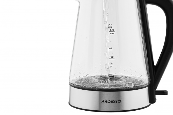 Опис товару Електрочайник Ardesto EKL-F110 1.7л/2150Вт/strix контроль/корпус скло/горловина скло