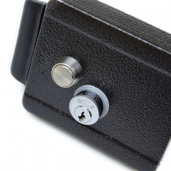 Відмикається імпульсом електричного струму (12 В), а також ключем або за допомогою вбудованої механічної кнопки. У комплекті додається 5 ключів. Тип ключа - зубчастий
