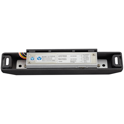 Накладна електромеханічна клямка з силою утримання 1000 кг. Без живлення відімкнена (можливо встановити режим замкнена). Живлення DC12V або DC24V. Споживання 110mA або 220mA. Розміри 230x40x30мм.