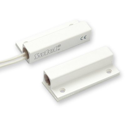 Датчик відкриття магнітоконтактний (геркон) на дерев'яні та пластикові поверхні, накладний тип установки, корпус пластиковий, черговий режим - 10 мм, режим тривоги - 24 мм. Колір: Білий. Магнітоконтактний Датчик відкриття (геркон) на дерев'яні та пластикові поверхні, накладний тип установки, пластиковий корпус, черговий режим - 10 мм, режим тривоги - 25 мм. Колір: білий. Датчик Satel K-1 застосовується як елемент охоронної сигналізації при спробі проникнення через двері і вікна. Підключається до будь-якого охоронного ППК або GSM-дозвонщику двома проводами. У разі спрацювання розмикає контакт. Не вимагає подачі живлення. Кріплення на самоклейку або саморізи.