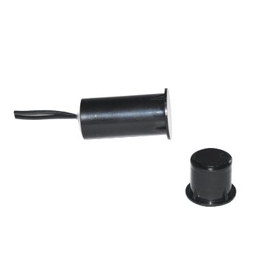 Датчик відкриття магнітогерконовий (геркон) на металеві поверхні, врізний тип встановлення, корпус пластиковий, черговий режим - 8мм, режим тривоги - 15мм. Колір: чорний.