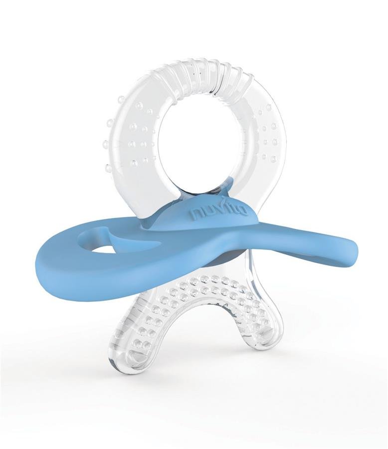 Гризун прорізувач Nuvita NV7003COOLBLUE блакитного кольору виготовлений з безпечного м'якого силікону та гуми. Підходить для початкового періоду прорізування зубів. Велика масажна поверхню з 3D-текстурою знімає свербіж і м'яко впливає на запалені ясна без ризику їх пошкодження. Завдяки схожою на пустушку формі, малюкам гризун зручно тримати і гризти. Не містить шкідливих речовин.