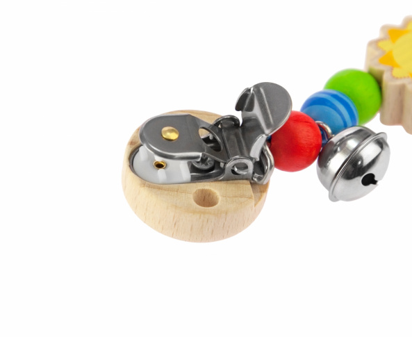Даруйте вашій дитині любов і тепло природи від самого народження! Екологічна кліпса «Сонечко» від німецького бренду Heimess – аксесуар на ліжечко або коляску найменших. Аксесуар вироблений з натуральних дерев’яних елементів і металевого дзвіночка. Усі частини безпечні і оброблені дуже якісно. Метал, з якого зроблений дзвіночок, гіпоалергенний, тож весь аксесуар в цілому – безпечний для здоров’я дитини. Дерев’яний аксесуар має і важливу розвиваючу функцію - допоможе малюку розвити зір, моторику рук та сприйняття кольору.