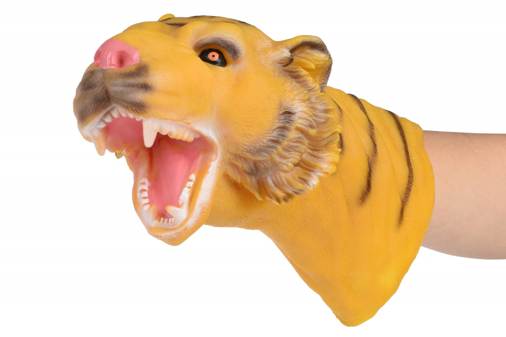 Іграшка на руку у вигляді тигра. На відміну від традиційний ляльок на руку, що часто виготовляються з м’якого матеріалу, ця іграшка виготовлена з вінілу. Це і робить іграшку оригінальною і відмінною від усіх інших. Тигр розміром 24х15см. Отвір для руки достатньо широкий, ляльку зручно тримати і гратися: відтворювати різні жести, емоції, рухи. Для дітей від 4 років.