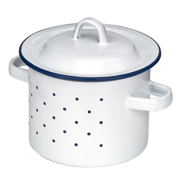 Білосніжка каструлька nic стане важливою та незамінною деталлю ігор дітей «у кухню». Виготовлена з металу, має емальоване покриття. Білосніжка каструлька з візерунком у синю цятку. Каструлька з двома ручками. У комплекті кришка. Гральний посуд виглядає зовсім як справжній. Діаметр виробу – 12 см. Посуд не розіб’ється і не нашкодить дитині. Для дітей від 3-ох років. Виробник – німецький бренд іграшок nic.