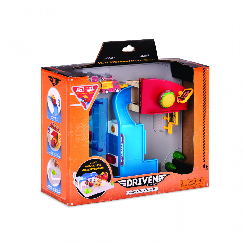 Ігровий набір DRIVEN POCKET SERIES DINE & DRIVE PIT STOP неодмінно сподобається малюкові. У набір входить все необхідне для цікавої гри: автозаправна станція, ресторан швидкого харчування, дорожні знаки, ексклюзивна машинка, яка є тільки в цьому наборі - фургон з доставкою їжі, та інші реалістичні предмети. Малюки уявлятимуть піт-стоп в подорожах по пересіченій місцевості або плануватимуть доставку їжі за допомогою фургона. У наборі: 35 предметів. Рекомендований вік: 4+