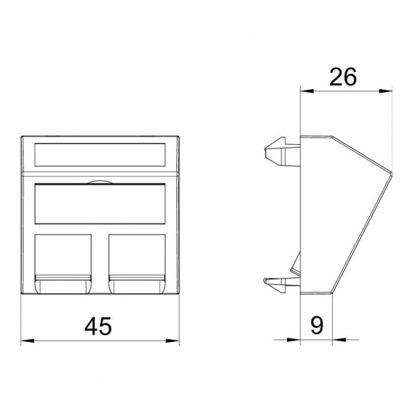 Опис товару Інформаційна панель кутова OBO Bettermann 45 х 45 мм 2 RJ45 пуста біла