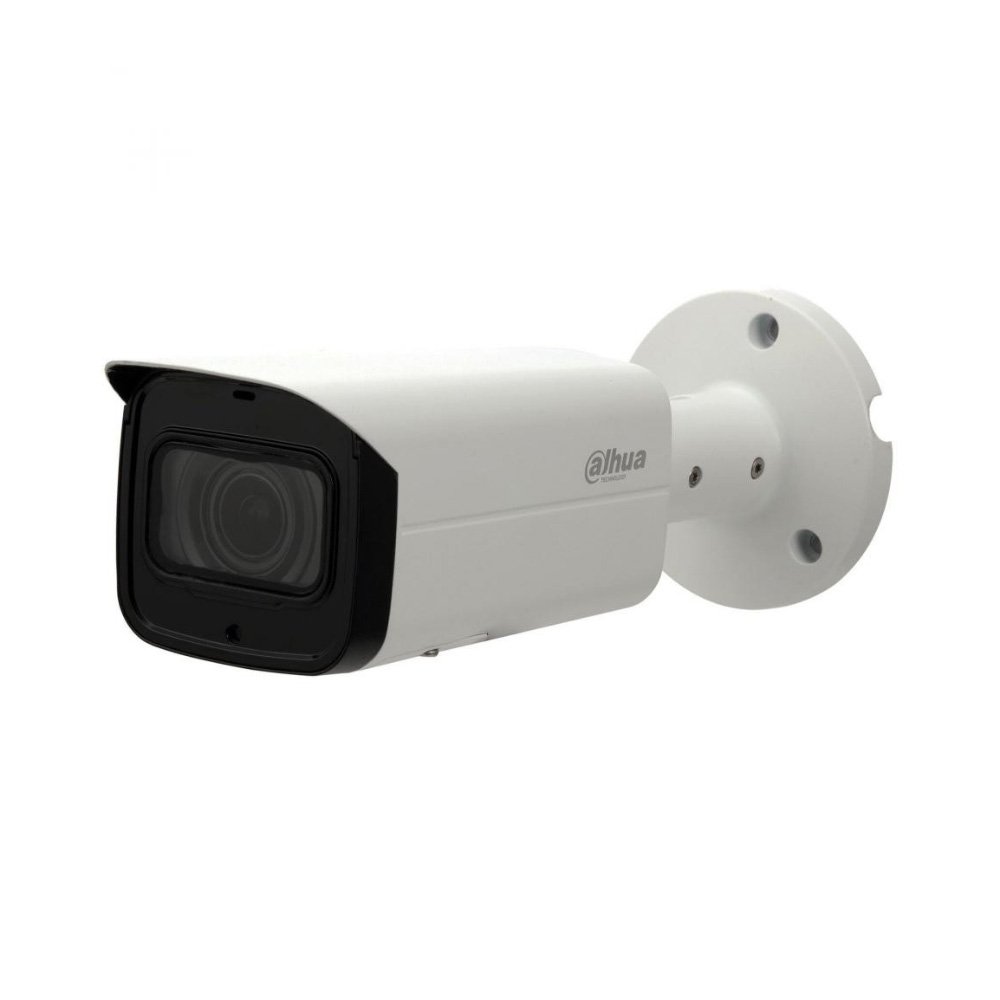 2 Mп IP відеокамера. Матриця: 1/2.8" Progressive CMOS. Кодек: H.265+ і H.264+. Об'єктив: f = 3.6 мм (кут огляду 84°). Чутливість: 0.004Lux. Роздільна здатність 2 Мп (1920 х 1080) і швидкість запису 25 кадрів/с. Функції: WDR 120dB, Smart (IVS). ІЧ-підсвічування 80 метрів. Клас захисту: IP67. Живлення: DC 12 В. PoE (802.3af). Робоча температура: -30°C до + 60°C. Розмір: 244.1 x 79 x 75.9 мм. Вага: 840 г.