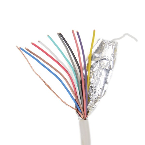 Сигнальний кабель для систем сигналізації. 10 жил по 0.22мм. Екранований. Матеріал провідника - покритий міддю алюміній (ССА). Зовнішня оболонка - ПВХ. Бухта - 100 м. Напруга - до 60В. Опір 12 Ом x 100м.
