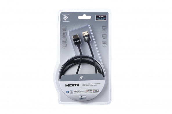 Опис товару Кабель 2Е HDMI 2.0 (AM/AM), Slim, High Speed, Alumium, black, 2m