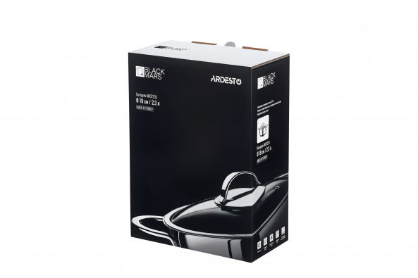 Опис товару Каструля Ardesto BLACK MARS, скляна кришка, 2.3 л, нержавіюча сталь
