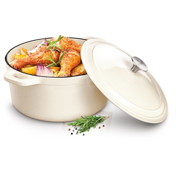 Каструля виготовлена з чавуну. Підходить для всіх типів кухонних плит. Цей посуд легко миється і виглядає завжди як новий. Внутрішній і зовнішній шари стійкі до утворення подряпин і тріщин.