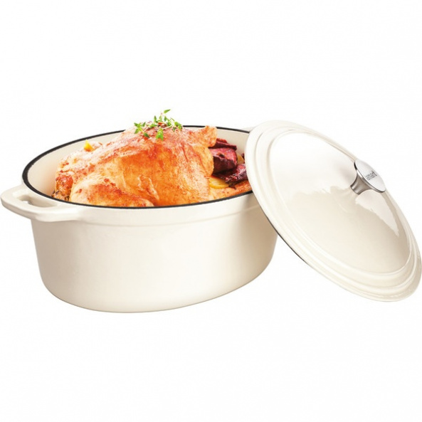 Каструля виготовлена з чавуну. Підходить для всіх типів кухонних плит. Цей посуд легко миється і виглядає завжди як новий. Внутрішній і зовнішній шари стійкі до утворення подряпин і тріщин.