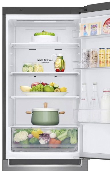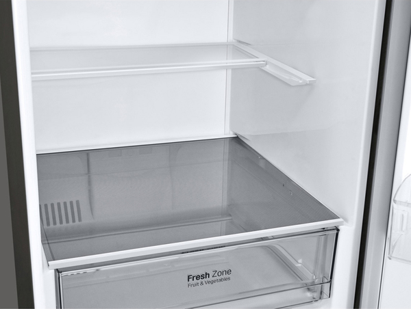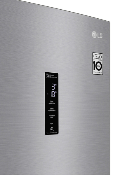 Холодильник LG з технологією DoorCooling +, з підключенням до Wi-Fi і управлінням через смартфон з додатком SmartThinQ. Панель холодного повітря в верхній частині холодильника забезпечує на 32% більш швидке і рівномірне охолодження, щоб ваші продукти зберігалися свіжими ще довше. Інверторний Лінійний компресор LG видає менше шуму, ніж звичайний, завдяки передової технології LG. Він також економить більше енергії і забезпечує більш високу надійність і довговічність, що підтверджено 10-річною гарантією на компресор.
