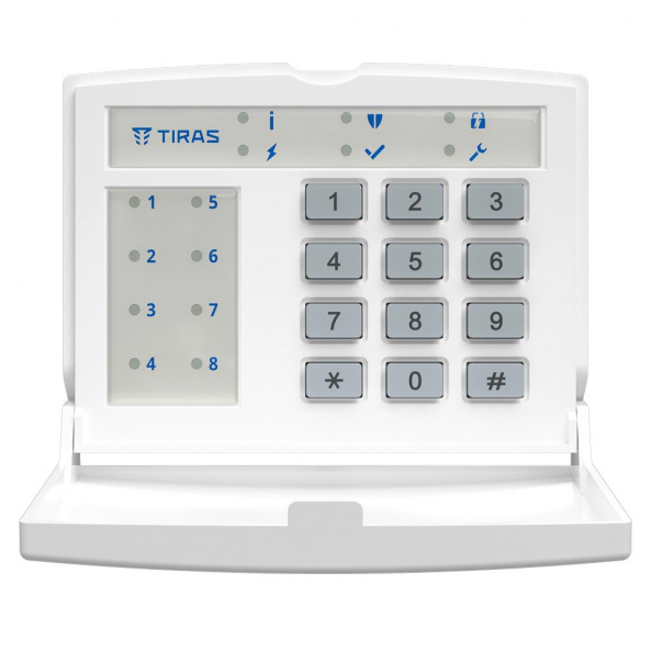 Дротова світлодіодна клавіатура для керування охоронними системами Orion NOVA від українського виробника TIRAS Technologies. Призначена для постановки/зняття з охорони, перегляду стану системи та інших базових функцій керування. Має 8 індикаторів зон; професійний рівень захисту GRADE 2; підключається через RS-485 з криптозахищеним обміном; зовнішнє живлення 12В; колір білий. Гарантія 36 місяців.