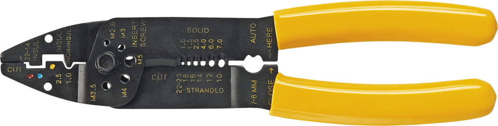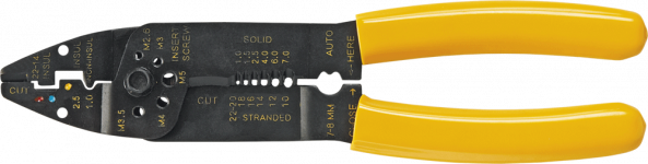 Кліщі для обтиску наконечників TOPEX довжиною 210 мм, з робочим діапазоном від 1 до 7 мм². Призначені для обтиску різних кабельних наконечників. Рукоятки, покриті антиковзаючою пластмасою, забезпечують комфорт під час роботи. Бренд TOPEX призначений для домашніх майстрів.