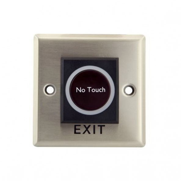 Кнопка виходу безконтактна, врізна, NO / NC / COM, нержавіюча сталь, діодний підсвічування кнопки виходу, DC 12V, напруга і струм комутації 12-28V / 3A. 86x86x29mm