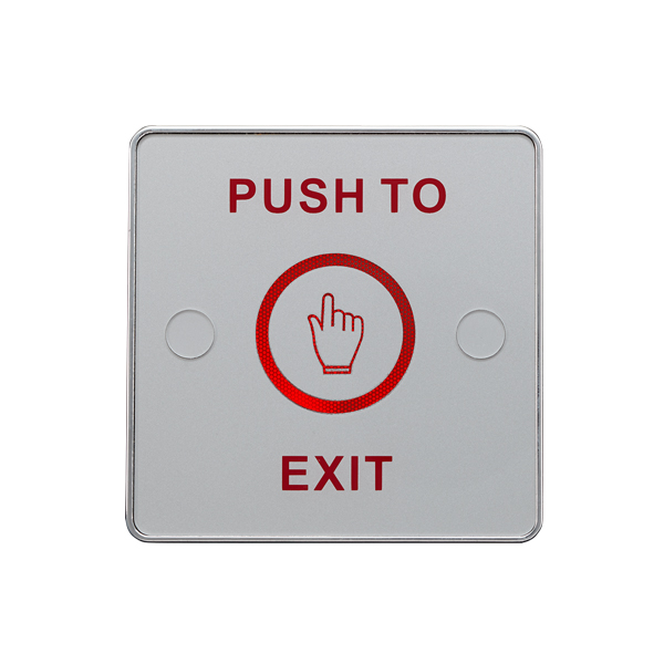 Кнопка виходу сенсорна контактна, накладна NO / NC / COM, пластик, DC12-24V, в режимі очікування 30mA, в режимі спрацювання 70mA, макс. напруга і струм комутації 30V / 1A; 125V / 0.5A, діодне підсвічування кнопки виходу, очікування червоний, спрацювання зелений, IP68, 86 * 86 * 16мм.