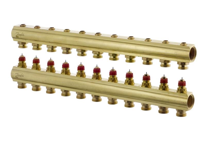 Розподільні колектора Данфосс призначені для застосування в гідравлічних системах підлогового опалення. На клапана можуть встановлюватися термоелектричні приводи TWA-A. Розподільні колектори поставляються з вбудованими вентильними вставками Данфосс, мають можливість попереднього гідравлічного налаштування для полегшення запуску системи теплої підлоги.