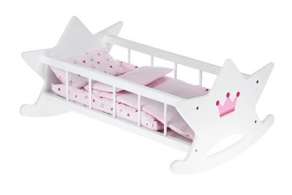 Іграшкове ліжечко німецького виробника іграшок goki створене для відпочинку улюблених ляльок. Ліжко виготовлене з натурального дерева, покрите білосніжною нетоксичною фарбою. Така іграшка – чудовий атрибут для ігор в «доньки-матері». Завдяки таким іграм дитина отримає чудовий досвід турботи за ляльками та собою. Деревина якісно відшліфована, вона гладенька і приємна на дотик. Ліжечко ідеально підходить для ляльок заввишки до 52 см. У комплекті також постільна білизна.