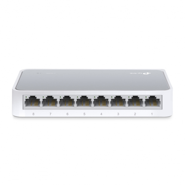 8 портів 10/100 Мбіт/с з автоузгодженням, з роз'ємом RJ45, підтримка авто-MDI/MDIX. Застосування технології Green Ethernet дає змогу заощадити до 73 % споживаної електроенергії. Контроль потоку IEEE 802.3x забезпечує надійність передавання даних. Пластиковий корпус, для настільного розміщення. Підтримка технології Plug and Play, не потрібне додаткове налаштування