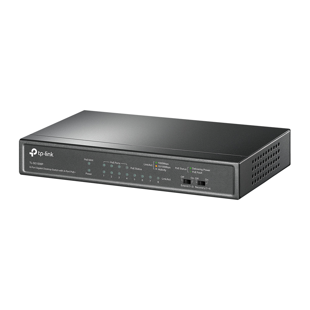 TP-Link TL-SG1008P — це 8-портовий гігабітний некерований PoE-комутатор із 4 портами PoE+. Він відповідає стандарту PoE+ 802.3af/at, що дає змогу кожному порту PoE підтримувати до 30 Вт потужності. Комутатор має загальний бюджет PoE в обсязі 64 Вт і чотири PoE-порти, що надає широкі можливості для використання в системах відеоспостереження в офісах, гуртожитках і малих бізнесах. TL-SG1008P сумісний з IP-камерами, точками доступу, IP-телефонами, комп'ютерами, принтерами та іншими пристроями.