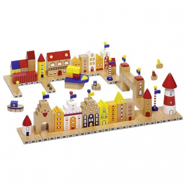 Великий екологічний конструктор «Моя маленька гавань» на 74 елементи від німецького бренду goki. З цим комплектом дитяча фантазія не знатиме меж – тут безліч частин для будування портового містечка з кораблями, маяками, будиночками, установами, мостами. Набір повністю вироблений із натурального дерева, його елементи вкриті нетоксичними фарбами на водній основі. Будуючи морську гавань, діти познайомляться із світом геометричних форм, а також відчують себе керівником порту, запускатимуть/випускатимуть кораблі, забезпечуючи місто усім необхідним. Рекомендований вік: від 3-х років.