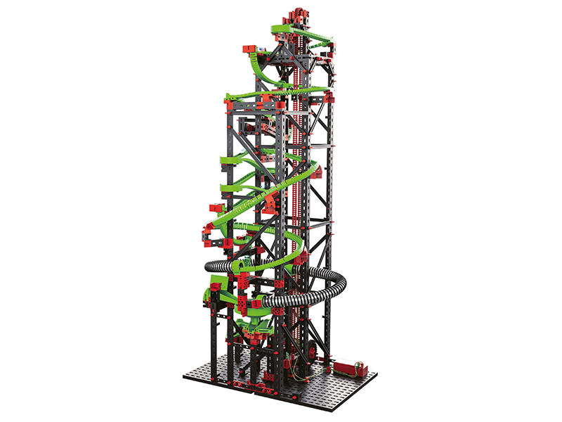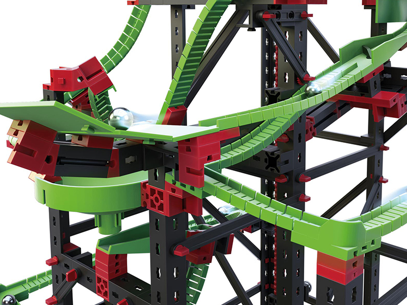 Більше веселощів, швидкості і справді гігантські розміри - це відмінні риси набору «Динаміка XXL». Загальна довжина траси - 5,6 м! У цьому конструкторі безліч нових додаткових функцій. Перехрестя, семафори, гнучкі тунелі і яскраві світлодіоди перетворять спуск кульок на справжню пригоду. За допомогою цього набору можна вивчити такі фізичні явища як: інерція, прискорення, збереження енергії, імпульсу та інші теми. Додаткові елементи, що вбудовуються в маршрут, забезпечують більше можливостей для будівництва нових кумедних конструкцій.
