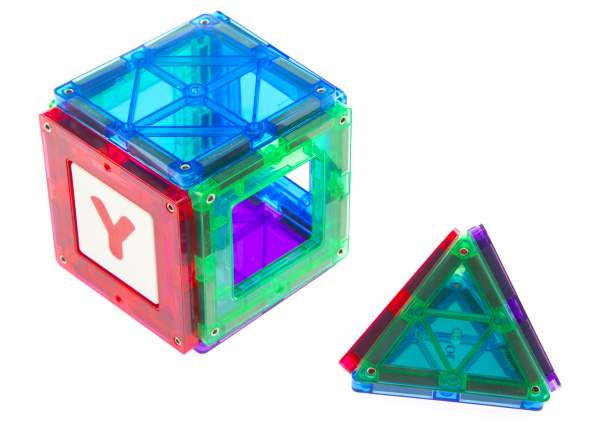 Якісний магнітний конструктор бренду MagPlayer для дітей від 3-х років. Частини набору вироблені із високоякісної напівпрозорої пластмаси. Конструктор складається із 32 геометричних фігур, серед яких: квадрати, віконця, декілька різновидів трикутників. Також до набору входить 6 двосторонніх квадратів з літерами, які вставляються в магнітні форми з отворами. Це дозволить дитині складати написи на власних спорудженнях. Конструктор вчить розрізняти кольори і геометричні форми, сортувати предмети за різними ознаками, вчити англійські літери і слова.